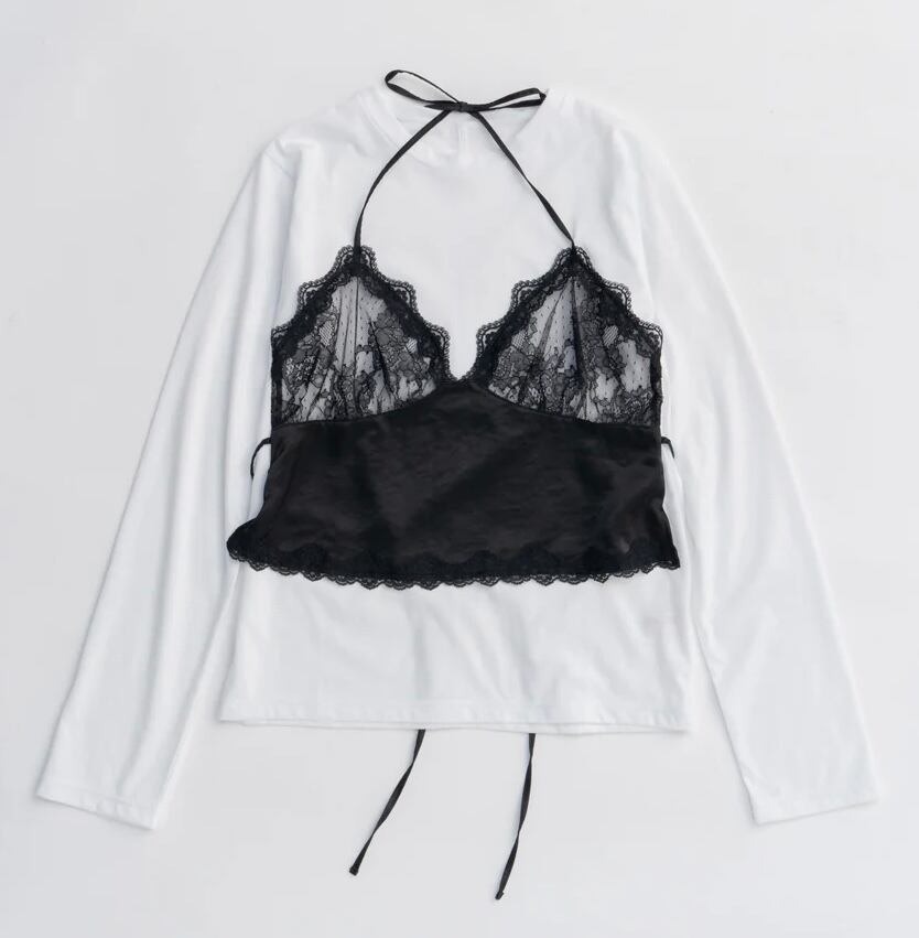ロンTにランジェリーをドッキングしたトップス。