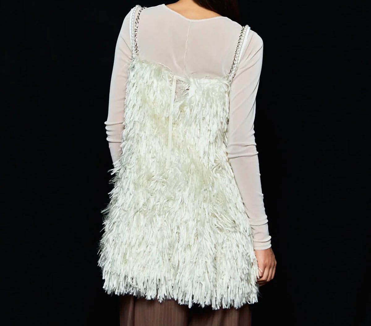 フェザーのような、ファーのような、ボリュームのある見た目がキャッチーなアイテム。