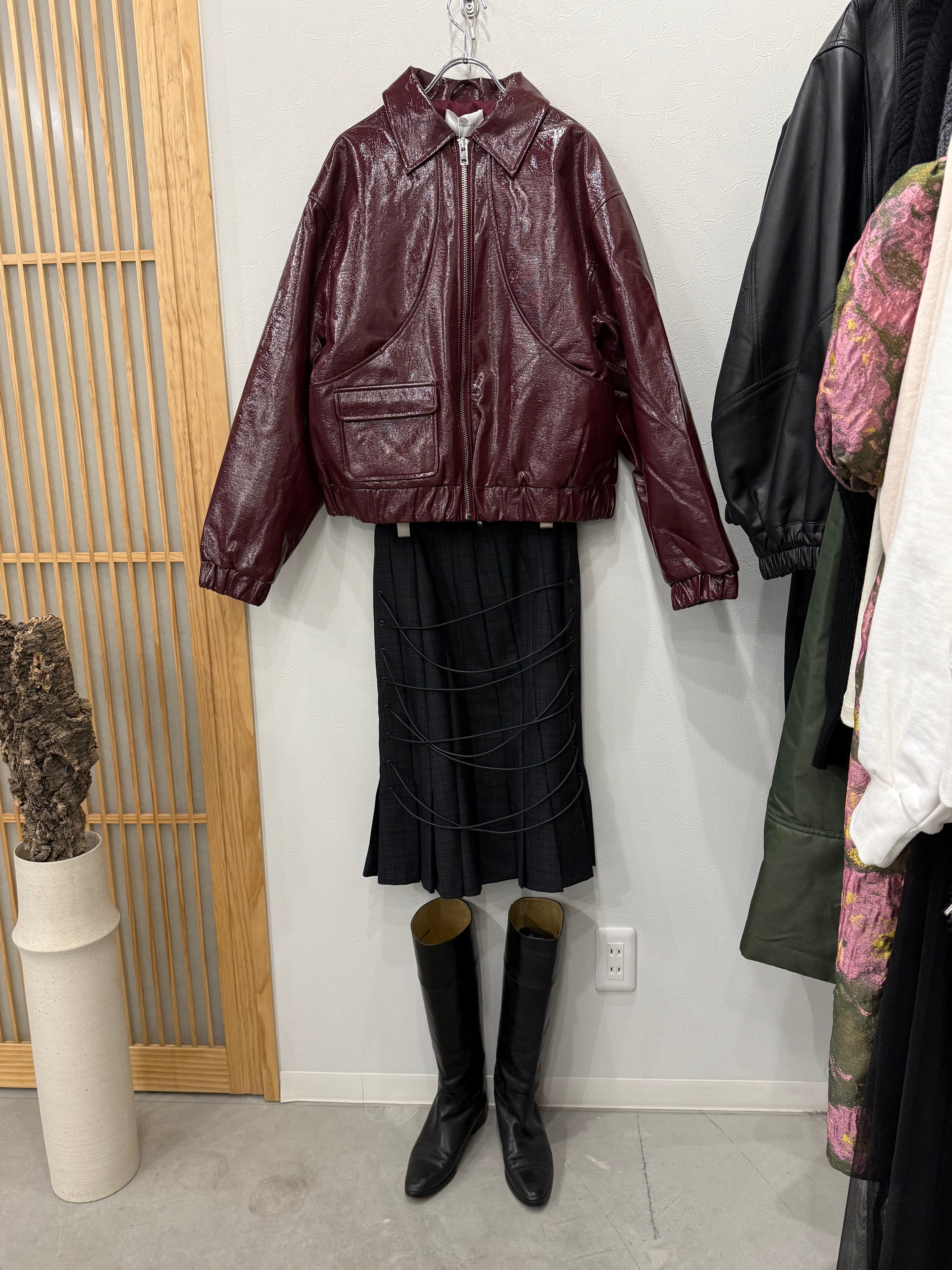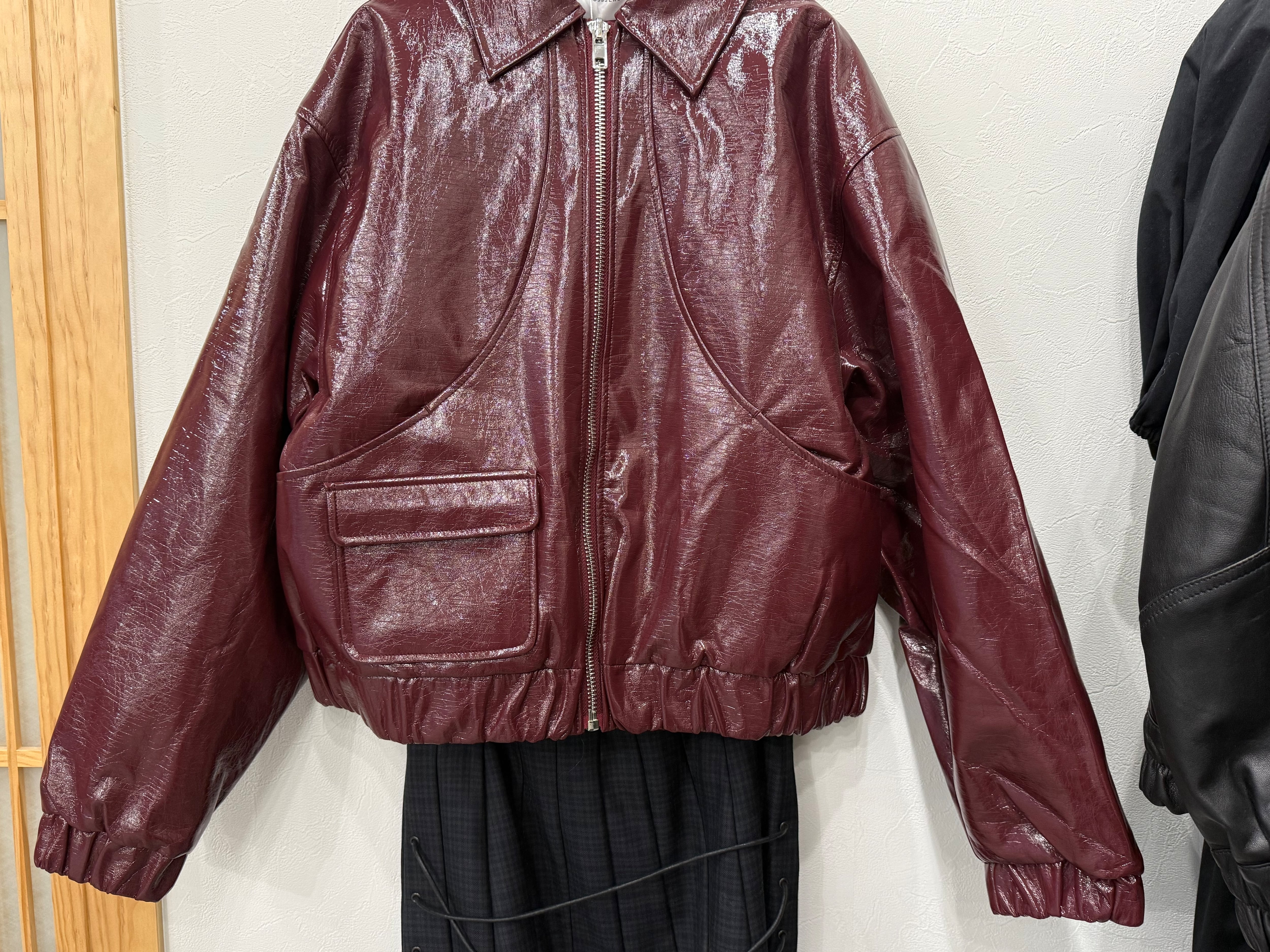 艶やかなエナメル素材のふっくら着心地のショートジャケット。目を惹く色味が一気におしゃれさを増しますのでいつものデニムやスラックス、スカートが活躍します。