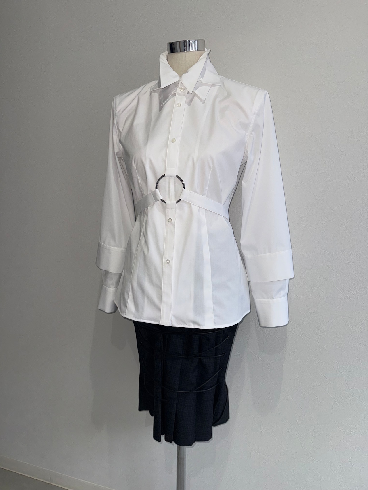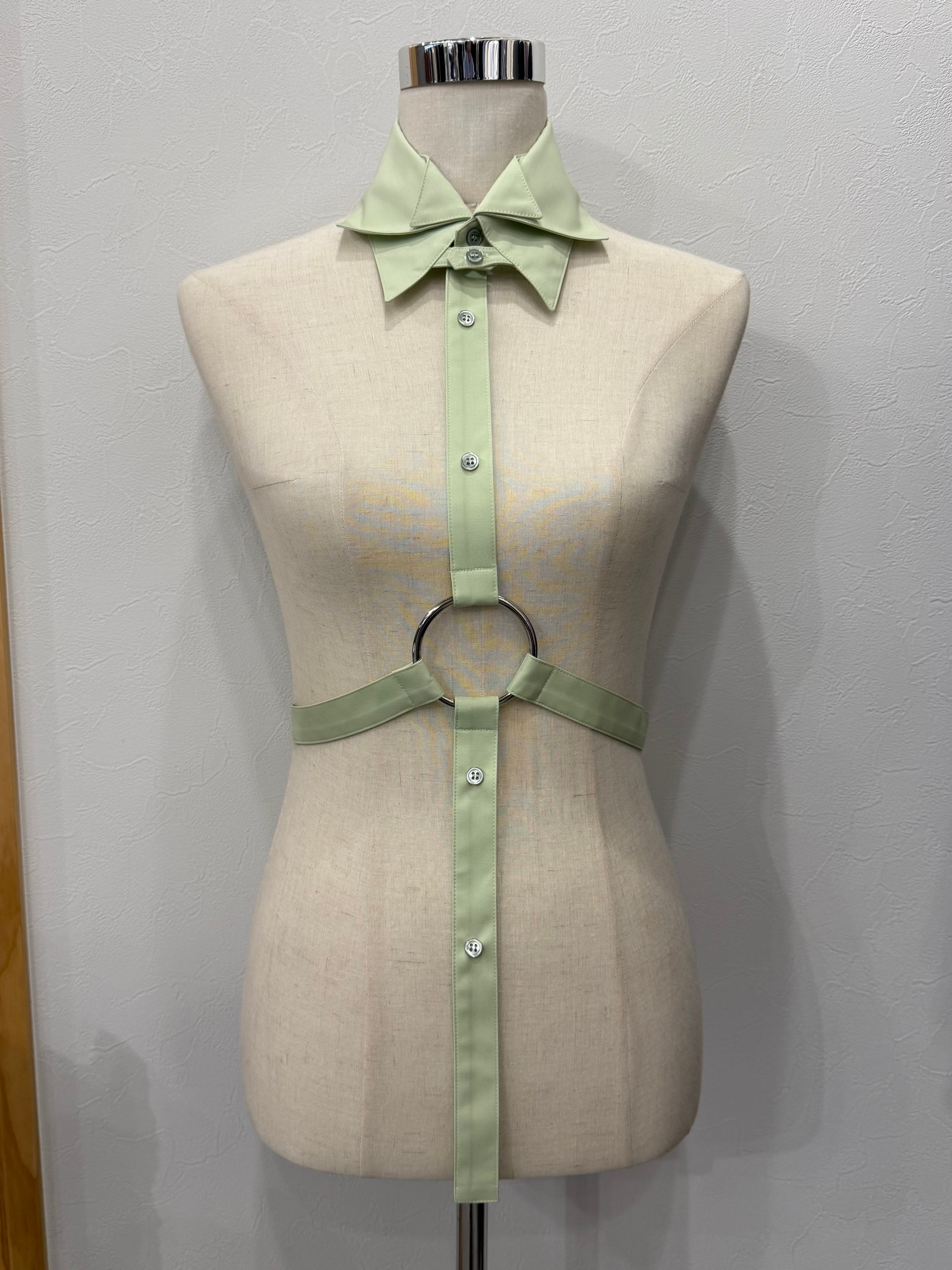 3種類の衿(ウィングカラー、タブカラー、ワイドカラー)をドッキングしたハーネス。
