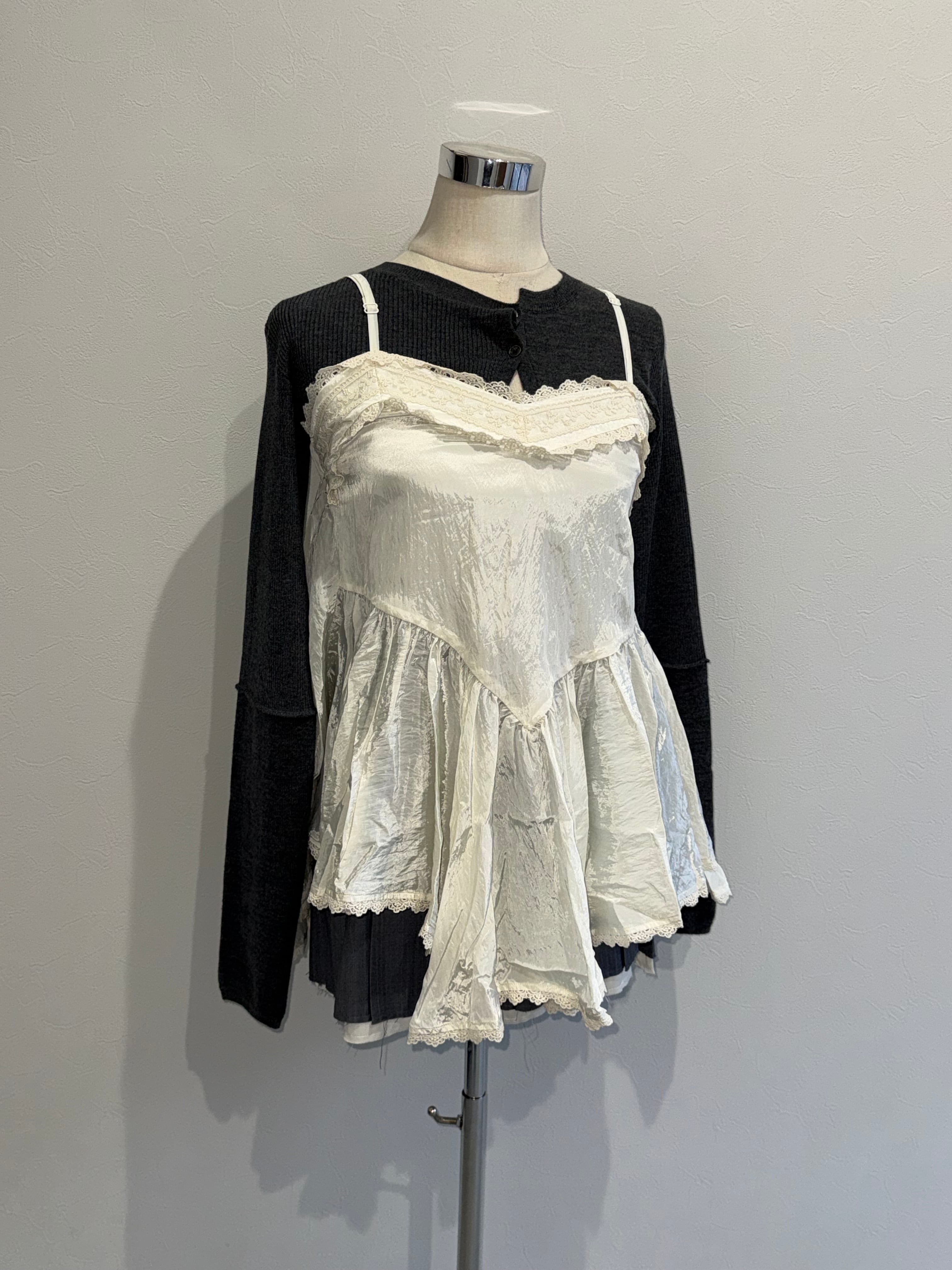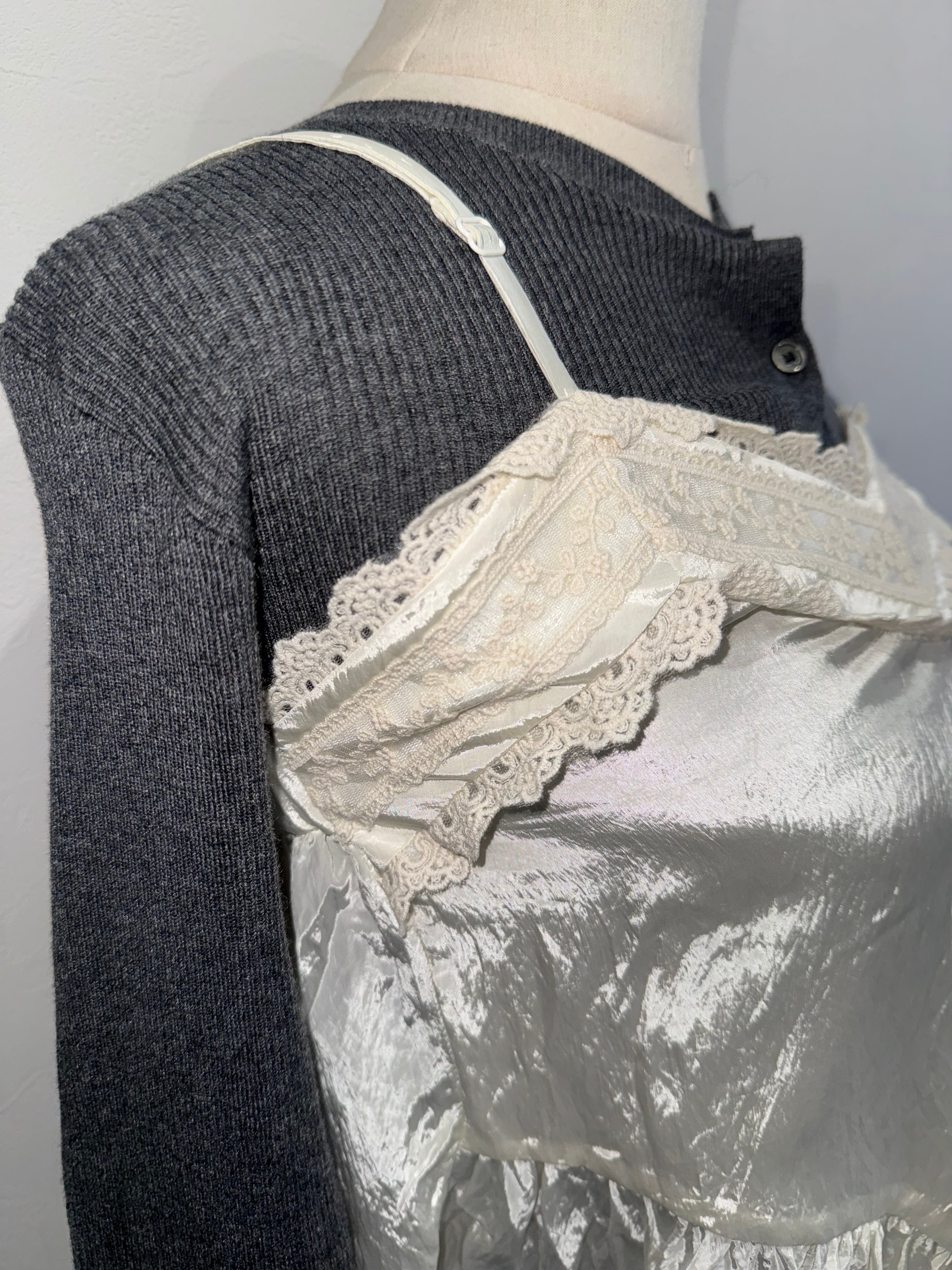 ヴィンテージ織機で織り上げたレース生地、レーステープを使用。上品な光沢感と絶妙な丈バランスはヴィンテージショップでは見られないアイテムかと…