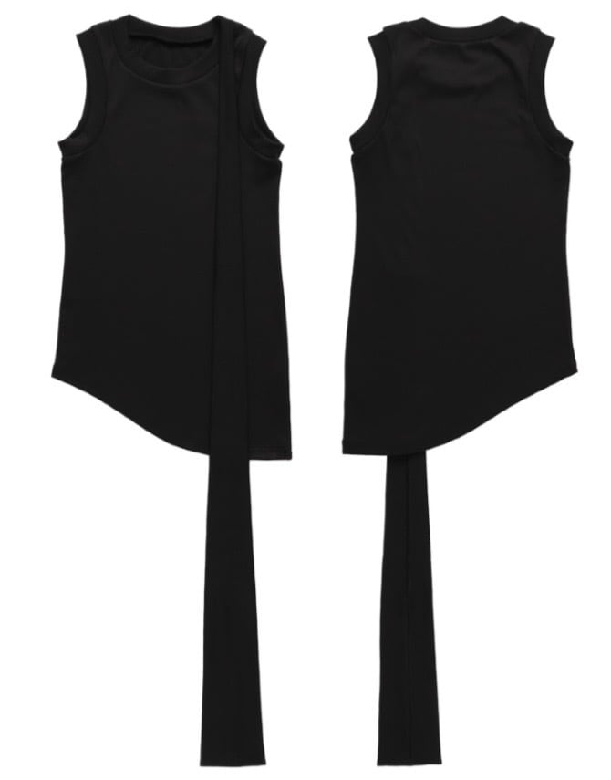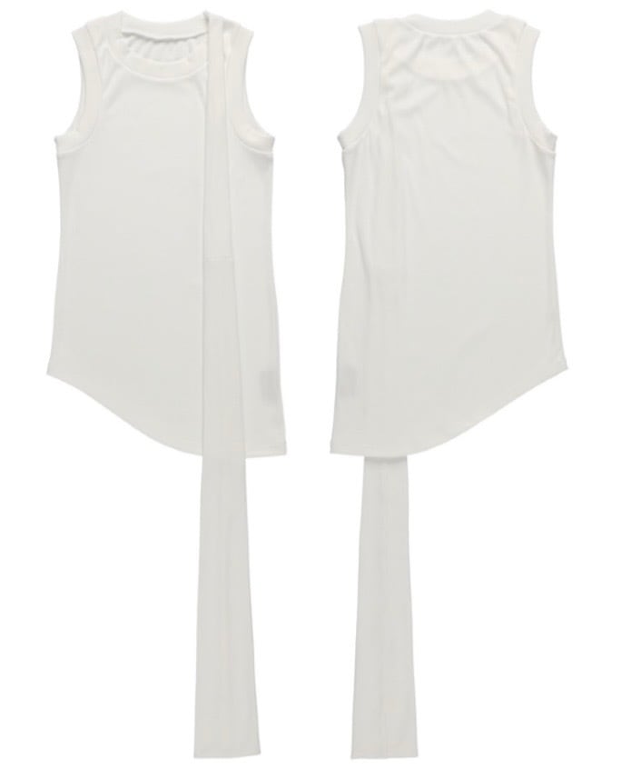 垂れ下がるタイを備えたタンクトップ。